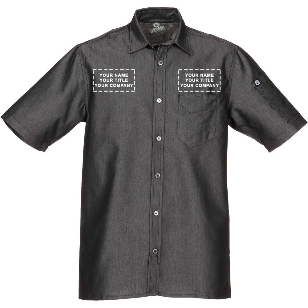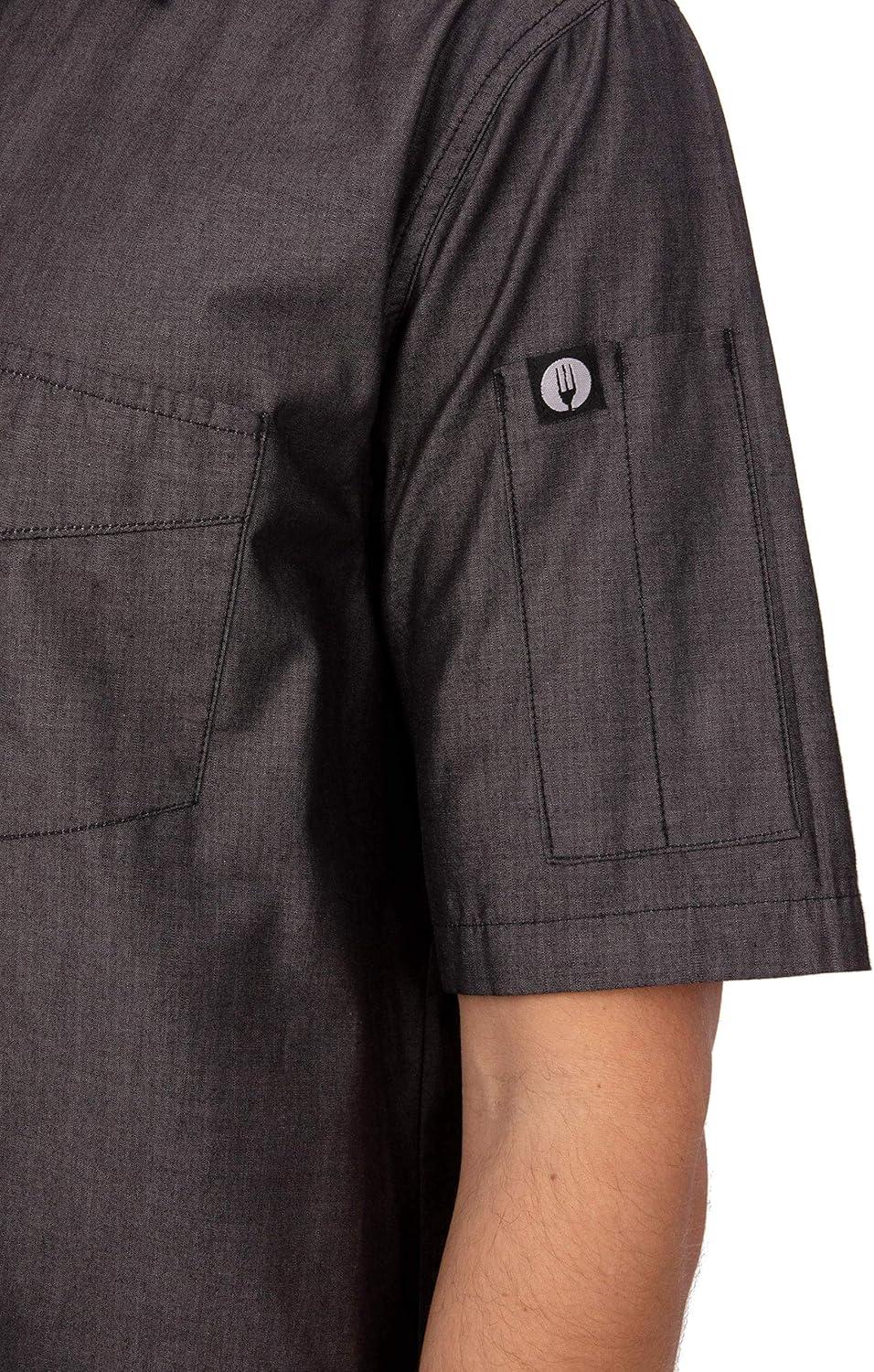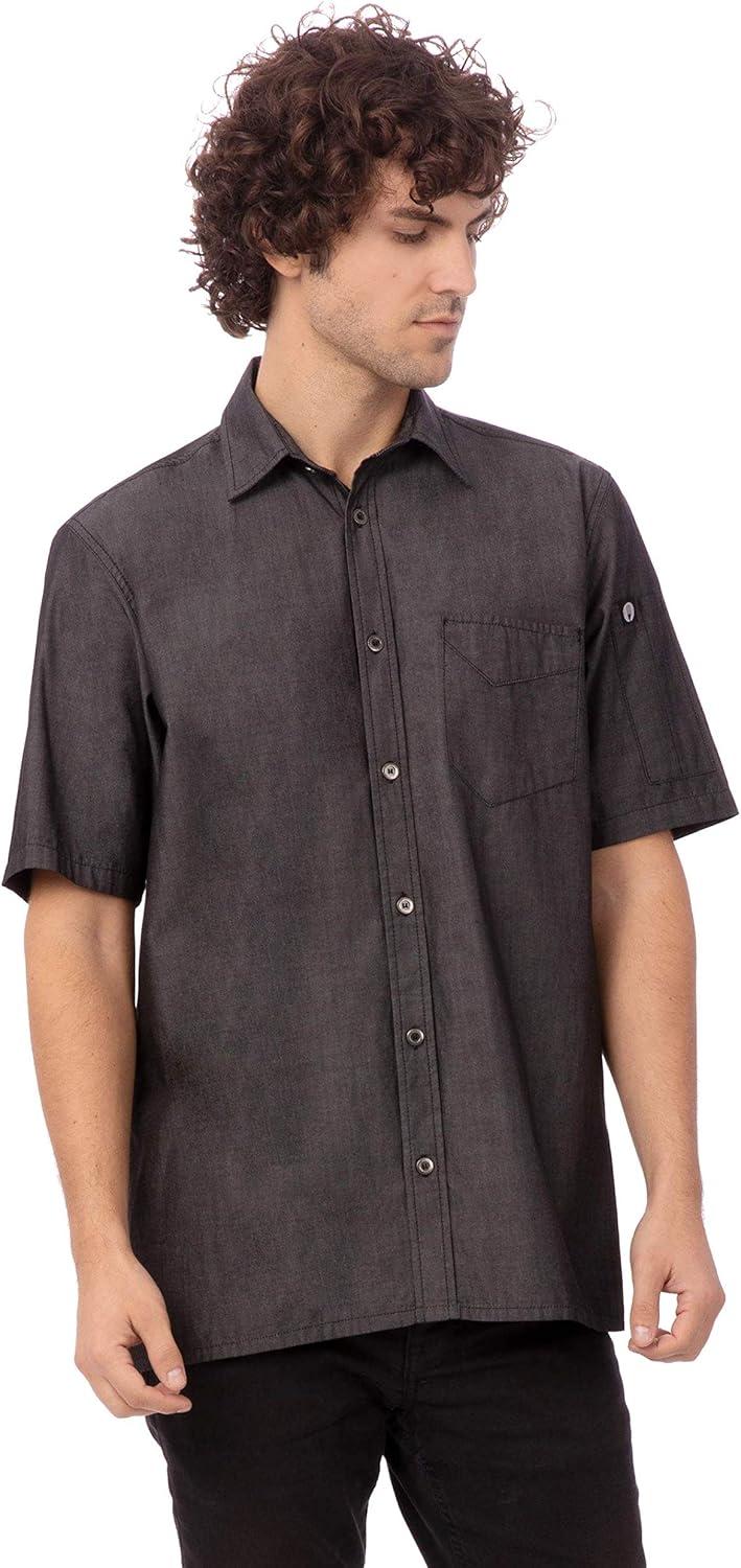 Chef Works Custom Embroidered Mens Detroit Short Sleeve Denim Shirt(Black)