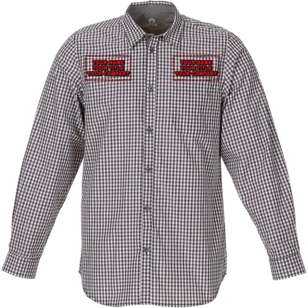 Chef Works Custom Embroidered Mens Modern Gingham Long Sleeve Dress Shirt(Chocolate)