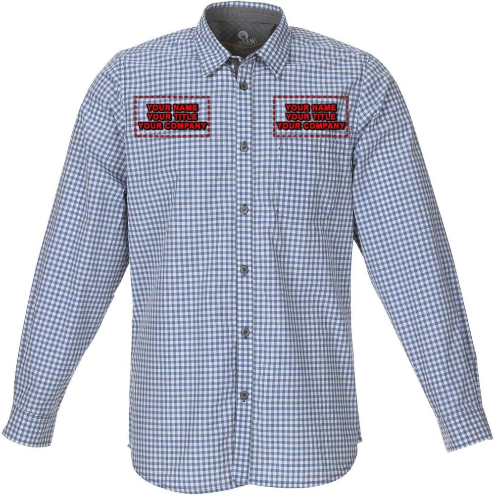 Chef Works Custom Embroidered Mens Modern Gingham Long Sleeve Dress Shirt(Strong Blue)
