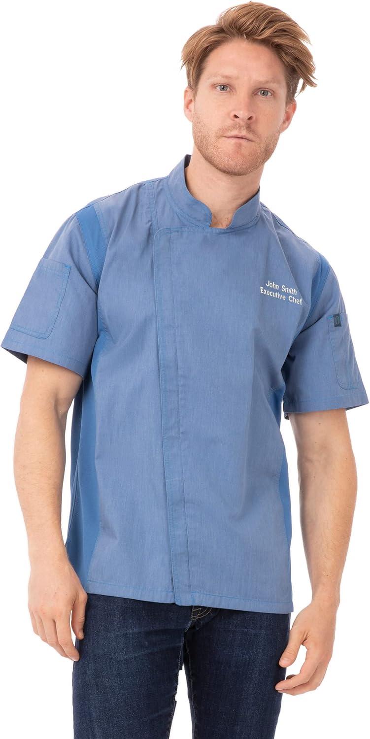 Chef Works Custom Springfield Chef Coat for Men – Personalized Text Embroidery(Sky Blue)