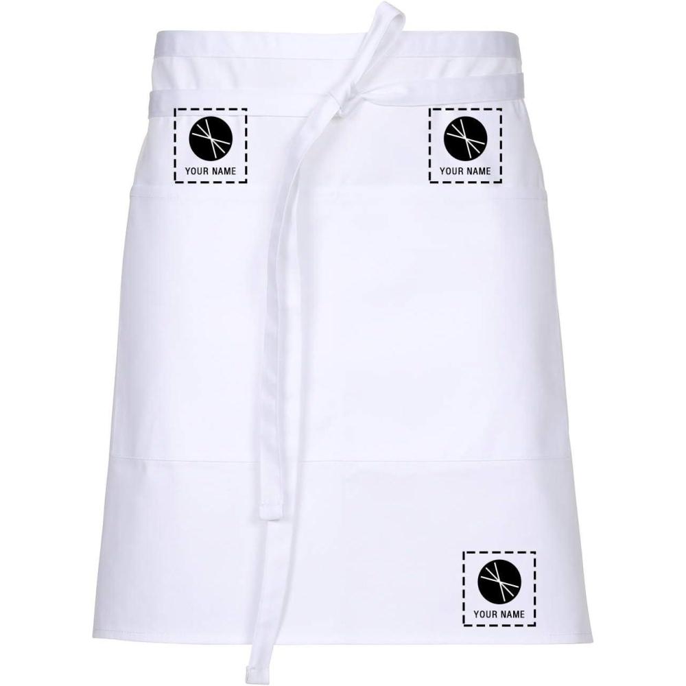 This is a custom embroidered version of the Chef Works Custom Unisex Half Bistro Apron with the ability to add your personalized logo and text. Welcome to polished professionalism. The Half Bistro Apron has an economy price point, but first-class features that make it stand out. This is a great apron for caterers buying en masse, but it's sharp enough for fine dining.