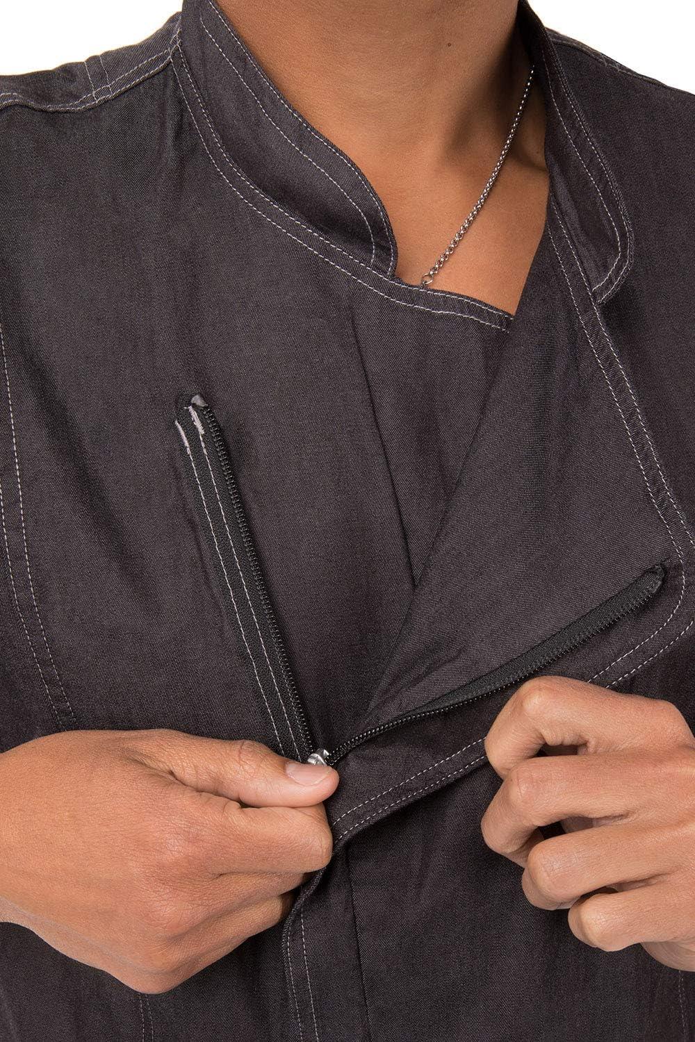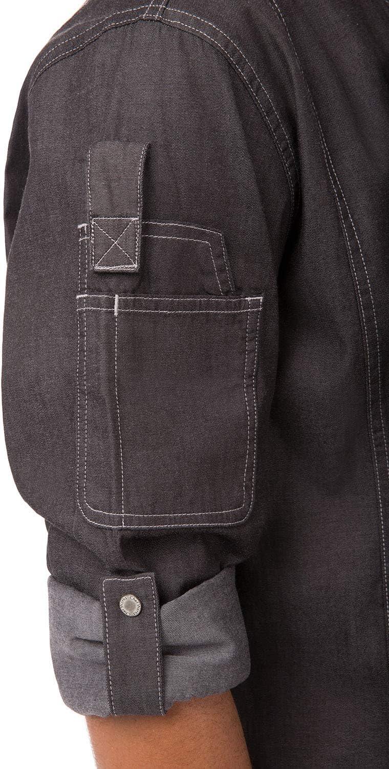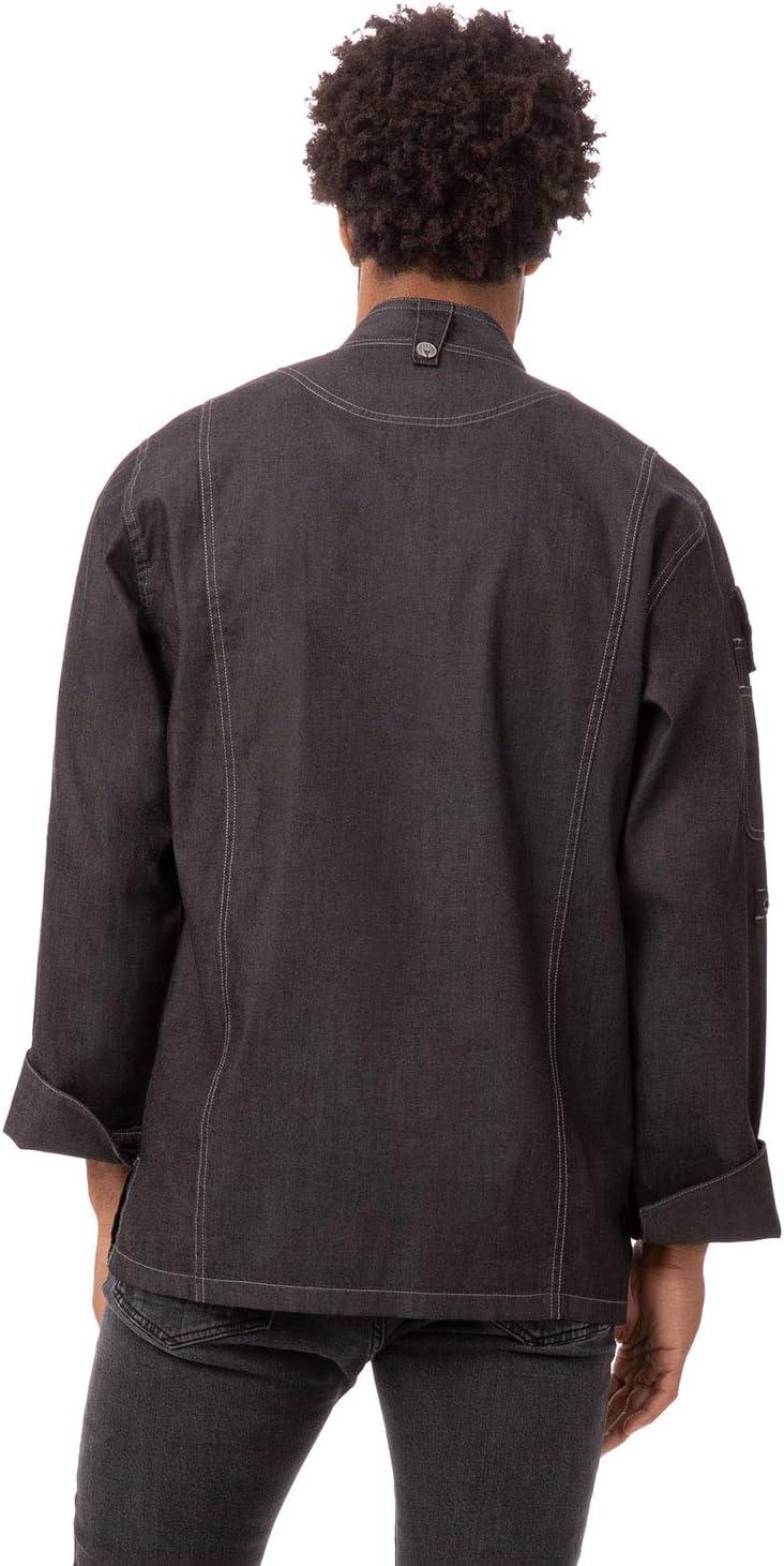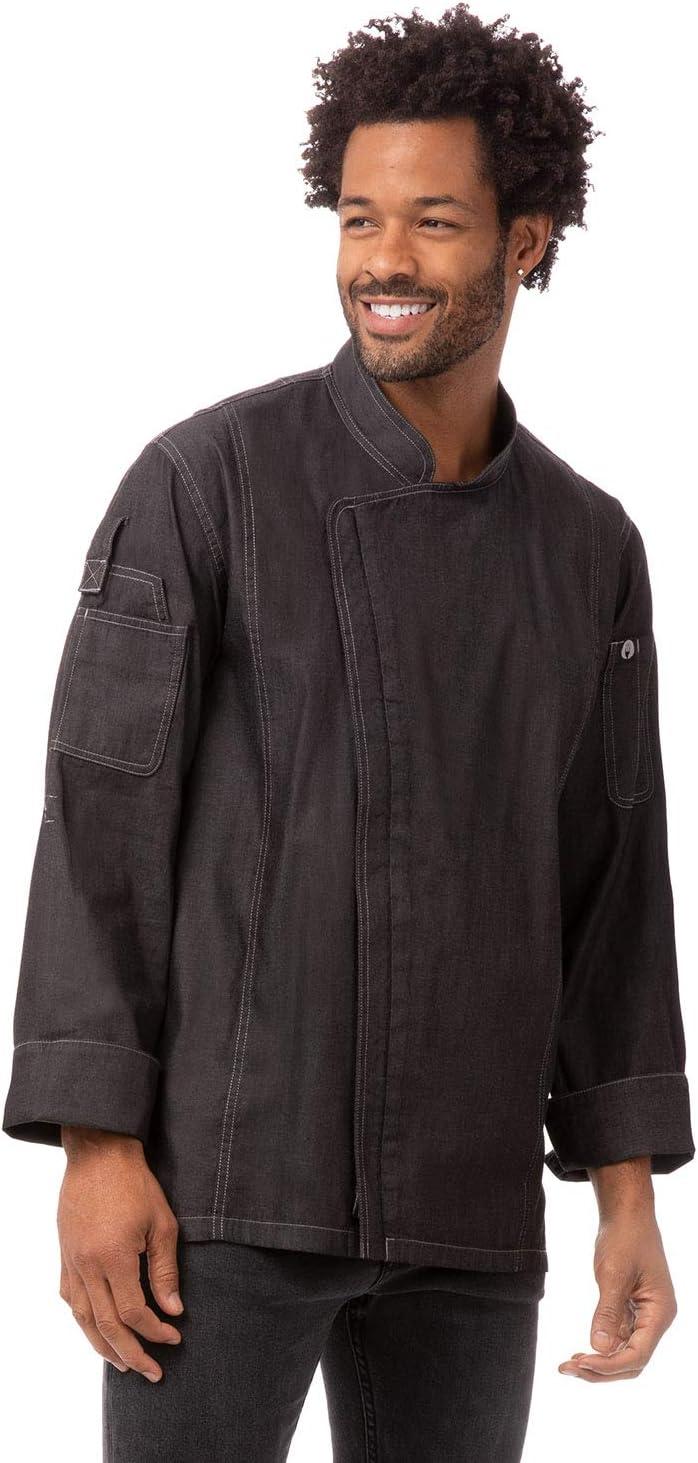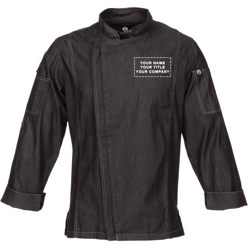 This Gramercy Denim Chef Coat is offered with custom embroidery. The Gramercy Chef Coat is lightweight and decked out with features like dual sleeve pockets, hidden earbud access, and a two-way zipper. The new modern fit delivers a more tailored look and feel.