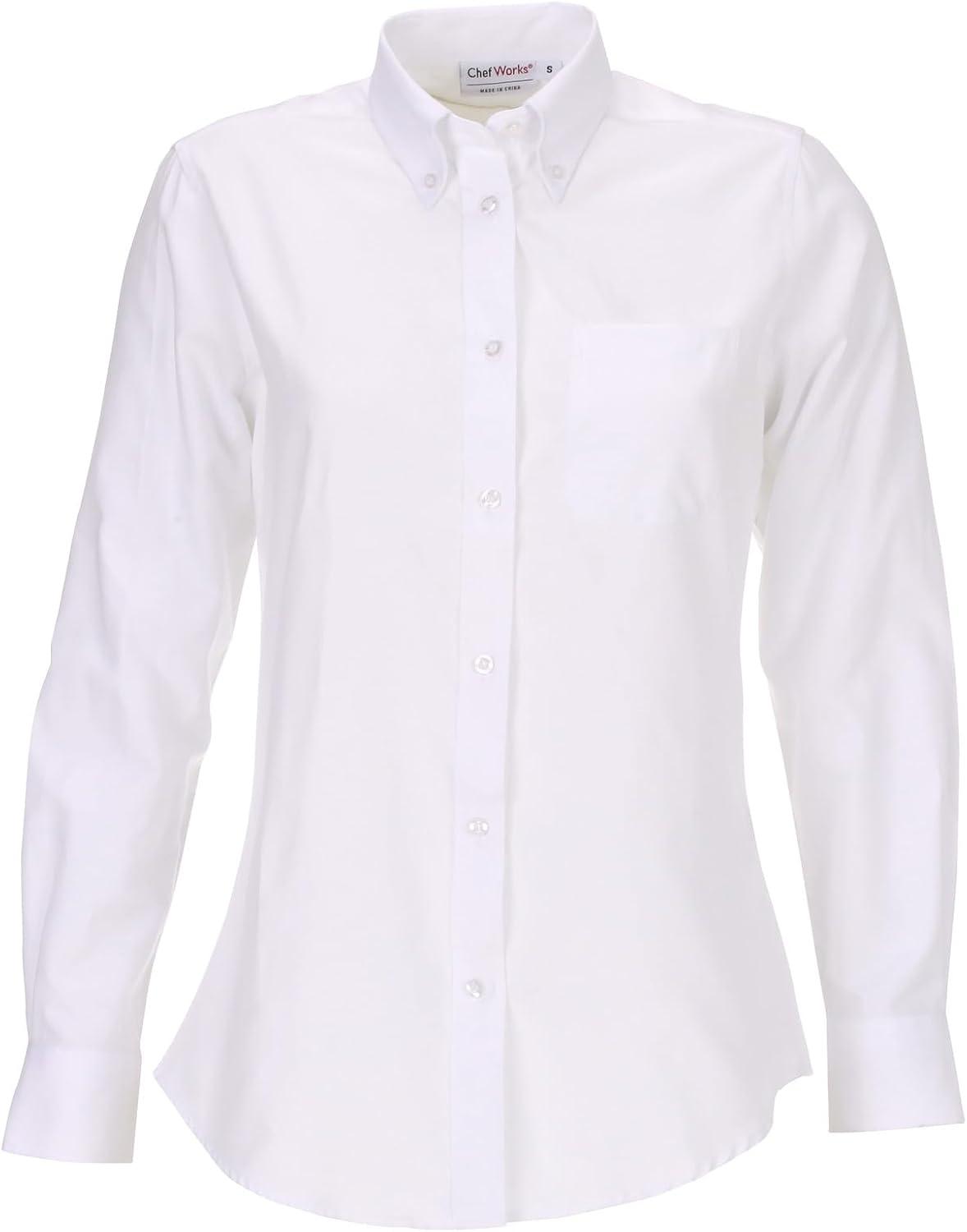 This simple, yet classic, White oxford is constructed with durable fabric and a flattering fit, to keep your staff looking sharp. Our women's oxford shirt have detailed such as a button down collar, long sleeve with 2 button cuffs, double back yoke with box pleat, 6 button placket, left chest pocket.